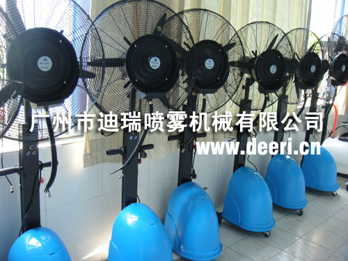 產(chǎn)品特點: 1、霧量大小可任意調(diào)節(jié) 2、只需普通自來水 3、快速水接頭、航空電接插頭 4、無須噴嘴、不堵塞 5、三檔風速調(diào)級 6、搖頭角度90°、可調(diào)仰角25° 7、帶精密過濾裝置 8、落地手推式帶方向輪 9、配腳剎防滑動設(shè)計 10、國標全銅電機壽命達4年