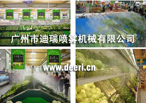 廣州市迪瑞噴霧機(jī)械有限公司陸續(xù)在廣東各超市、菜市場安裝了噴霧保鮮系統(tǒng),噴霧裝置利用干凈的自來水充分霧化到蔬菜區(qū),不僅給蔬菜足夠的保鮮濕度以補(bǔ)充蔬菜的水分,還3米范圍內(nèi)溫度會降低6攝氏度左右。